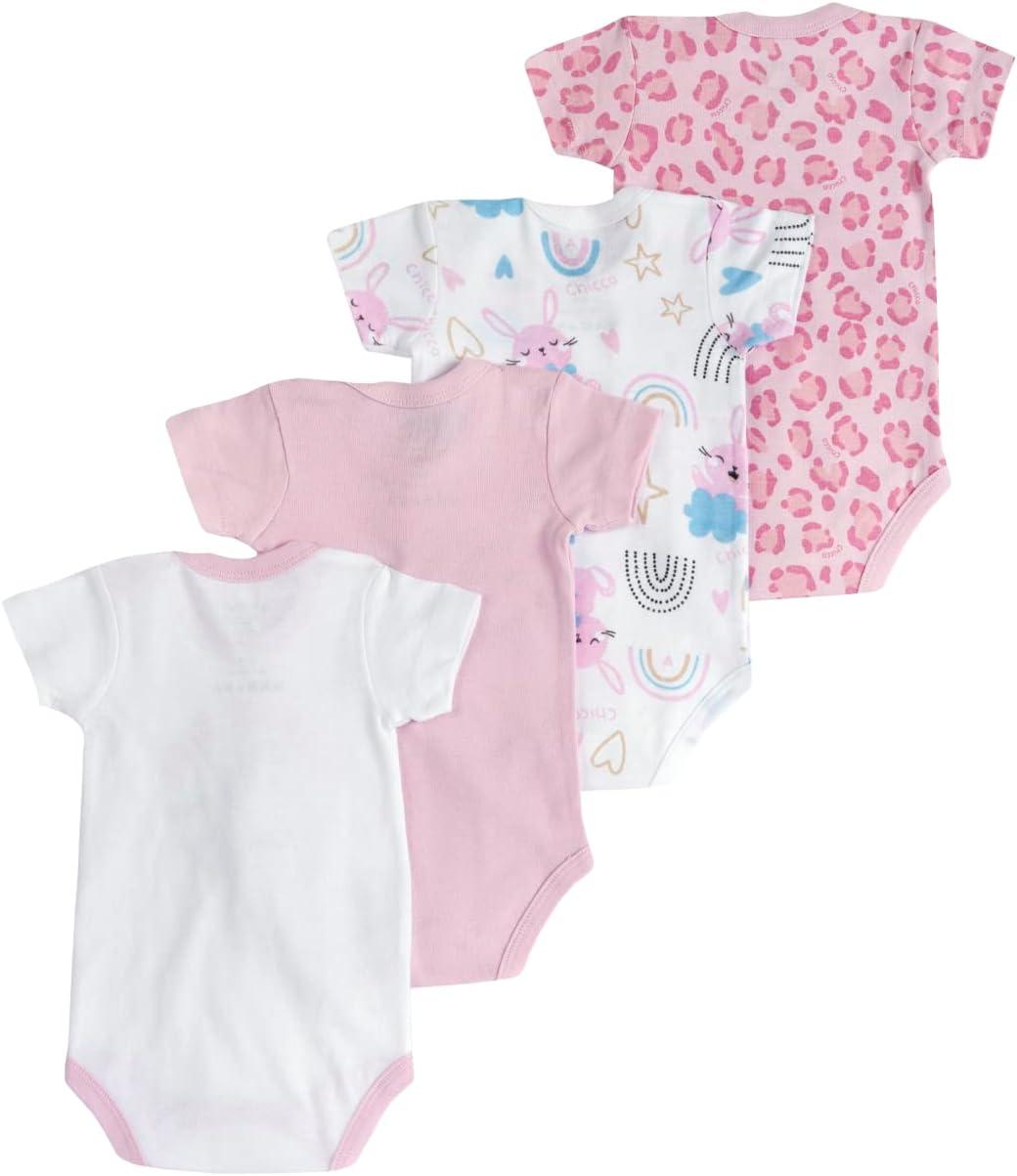Chicco 4-piece baby bodysuit set made of lightweight cotton with short sleeves. Comfortable inleg and shoulder opening with buttons. Set of bodysuits embellished with dragon lettering, patterns and prints. This garment is made from cotton from a responsibly managed supply chain because Chicco wants to ensure our children have a better future. Made according to Oeko-Tex standards.
